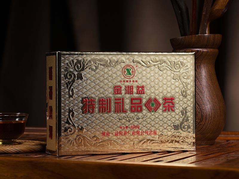 2002年,我公司通過(guò)改進(jìn)生產(chǎn)工藝和技術(shù)設備,研制開(kāi)發(fā)了“金湘益”特制禮品茯茶。該產(chǎn)品采用優(yōu)質(zhì)黑毛茶為原料,科學(xué)精制而成,具有形美、質(zhì)佳、味香、金花普茂、滋味醇和的特點(diǎn)。