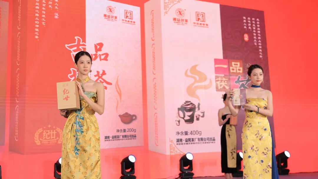 在發(fā)布儀式上,與會(huì )領(lǐng)導和專(zhuān)家共同啟動(dòng)推桿,隨著(zhù)金沙傾瀉而下,"紀廿"新品正式亮相,象征著(zhù)湘益茯茶開(kāi)啟新的發(fā)展征程。隨后,一場(chǎng)別開(kāi)生面的新品模特走秀吸引全場(chǎng)目光。身著(zhù)典雅服飾的模特手捧"紀廿"新品,以?xún)?yōu)雅的姿態(tài)展示這款傳承與創(chuàng )新相結合的茯茶珍品,傳統茶文化與現代時(shí)尚在此完美交融,凸顯出新品的獨特魅力。